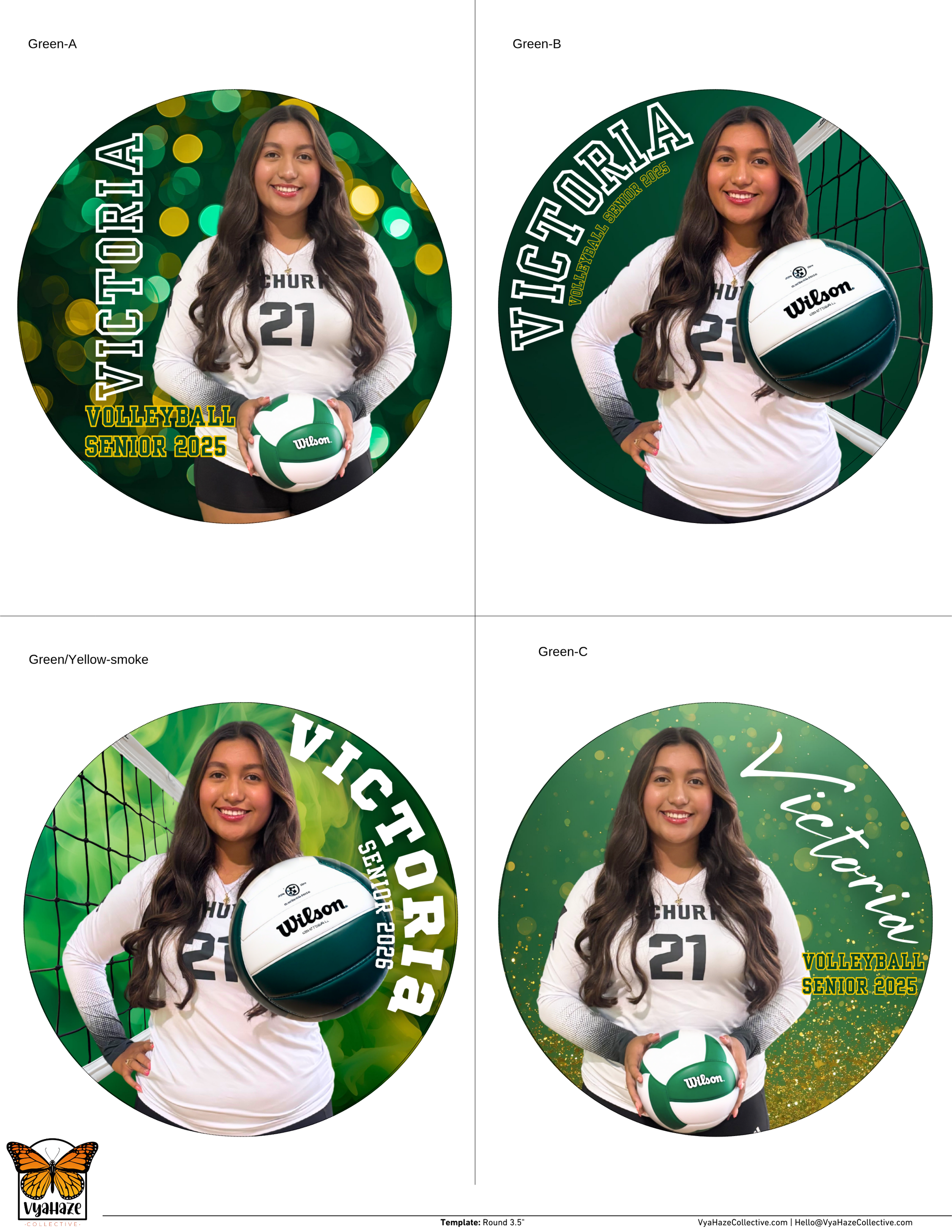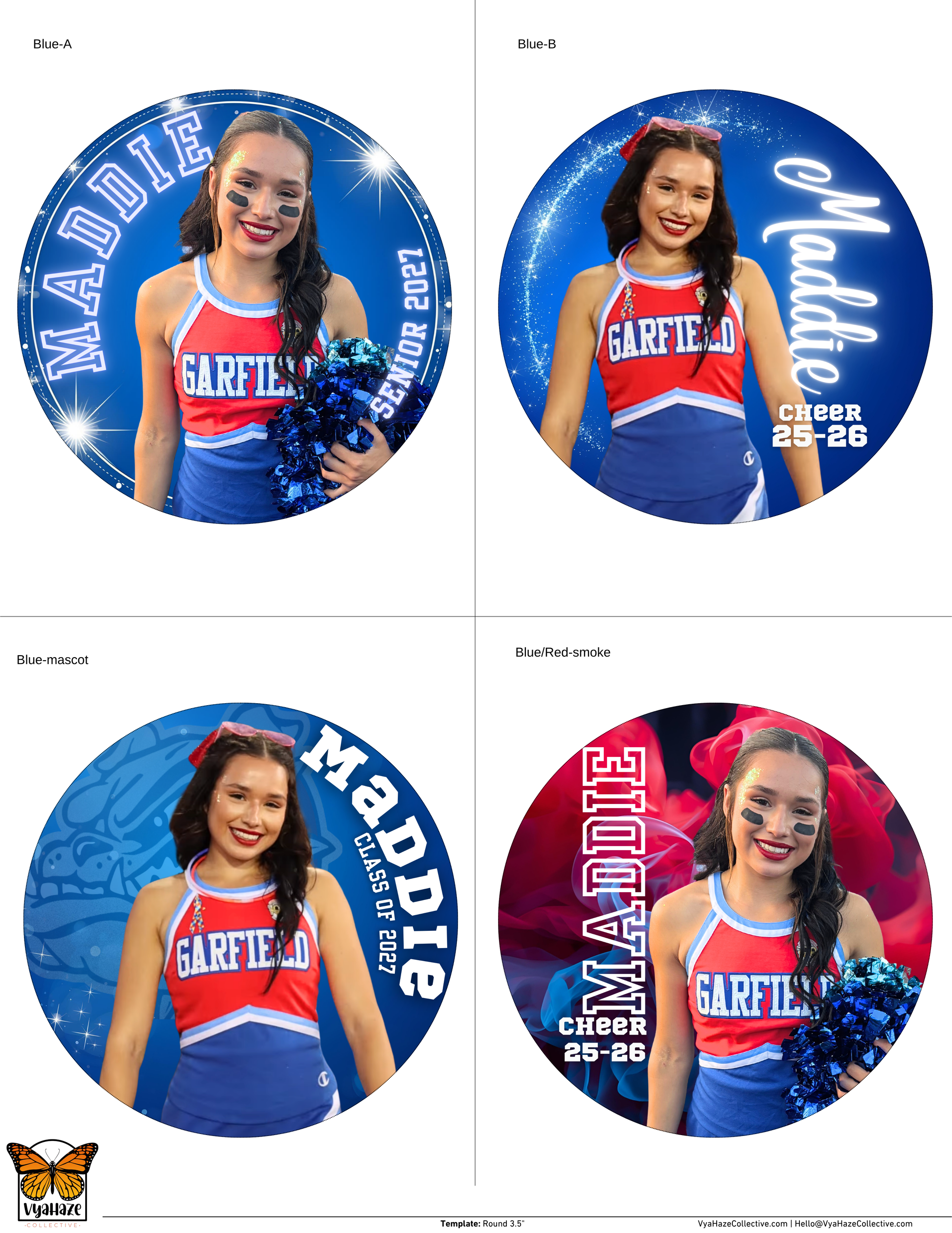 Round 3.5" high-quality custom button pins. Show off your athlete or graduate with our customized Bragg button pins